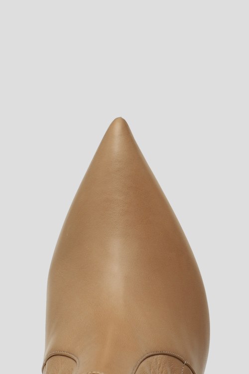 Детали: Женские бежевые ботильоны из кожи от Casadei (Касадей). Острый носок, дизайн без застежки, высокий каблук-шпилька, внутри кожаная стелька. Измерения: каблук: 9.5 см, высота голенища сзади: 13.5 см