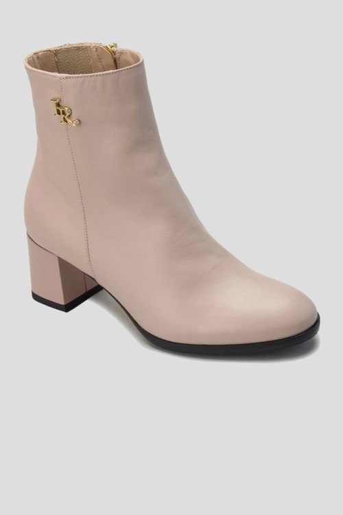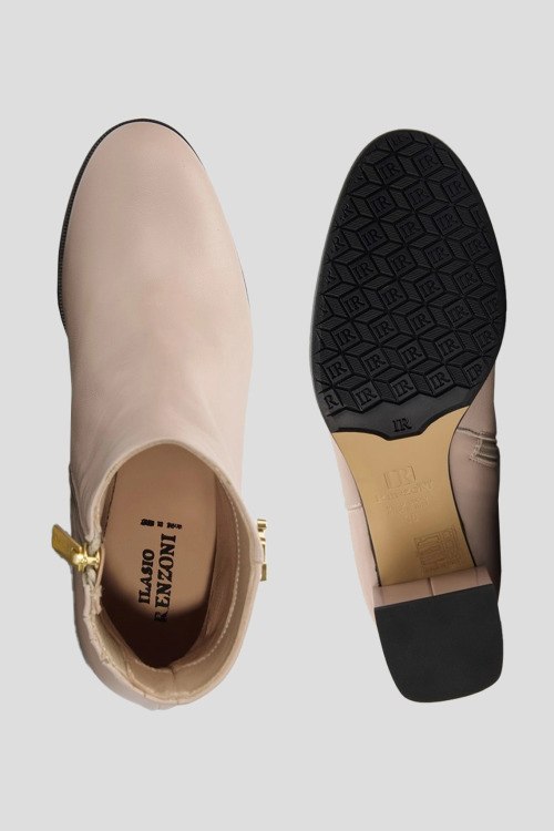 Детали: Женские светло-бежевые кожаные ботильоны от Ilasio Renzoni (Иласио Рензони). Модель из гладкой кожи, значок логотипа, золотистая фурнитура, застежка-молния сбоку, закругленный носок, кожаная стелька. Высота каблука: 5.5 см, высота голенища: 14 см, объем голенища: 20 см. Замеры для: 36 размера