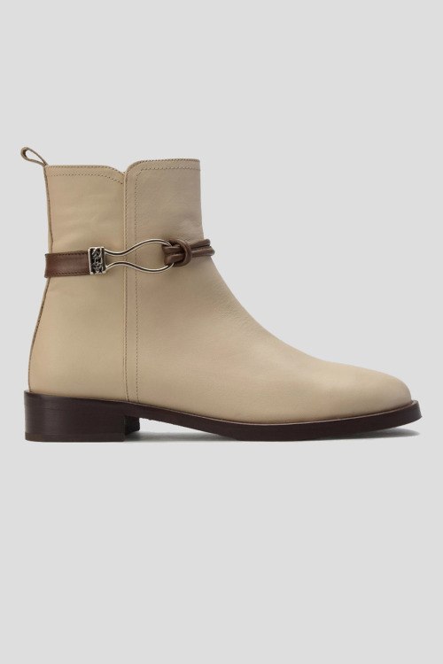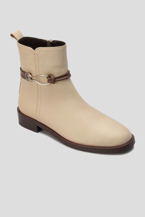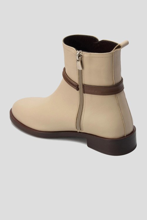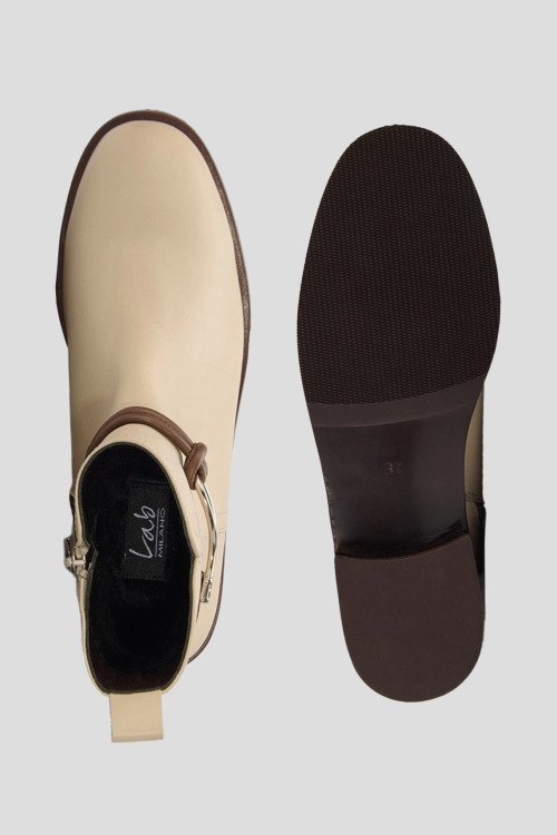 Детали: Женские светло-бежевые кожаные ботильоны от Lab Milano (Лаб Милано). Модель из гладкой кожи, серебристая фурнитура, застежка-молния сбоку, закругленный носок, флисовая стелька