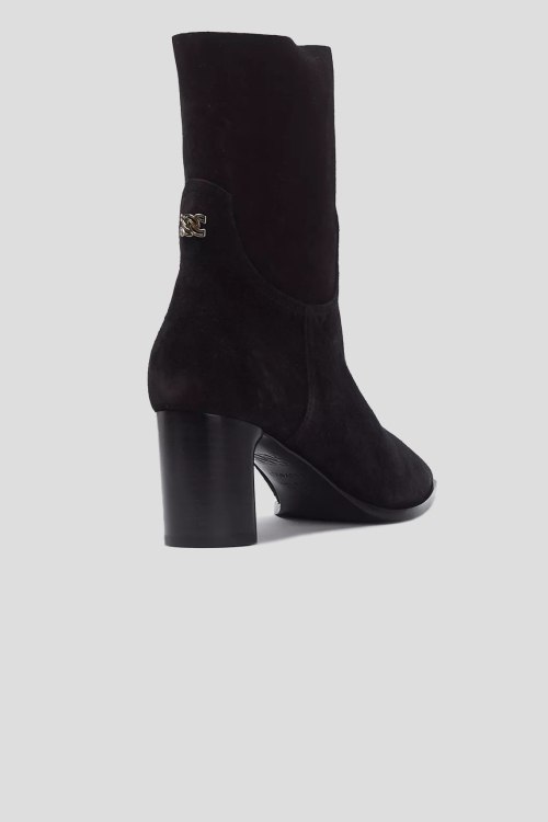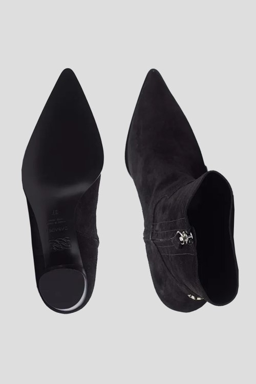 Детали: Женские черные замшевые ботильоны от Casadei (Касадей). Узкий носок, застежка-молния сбоку, широкий каблук