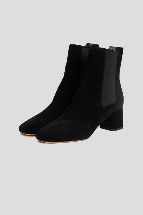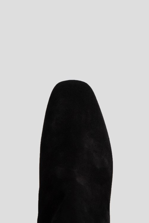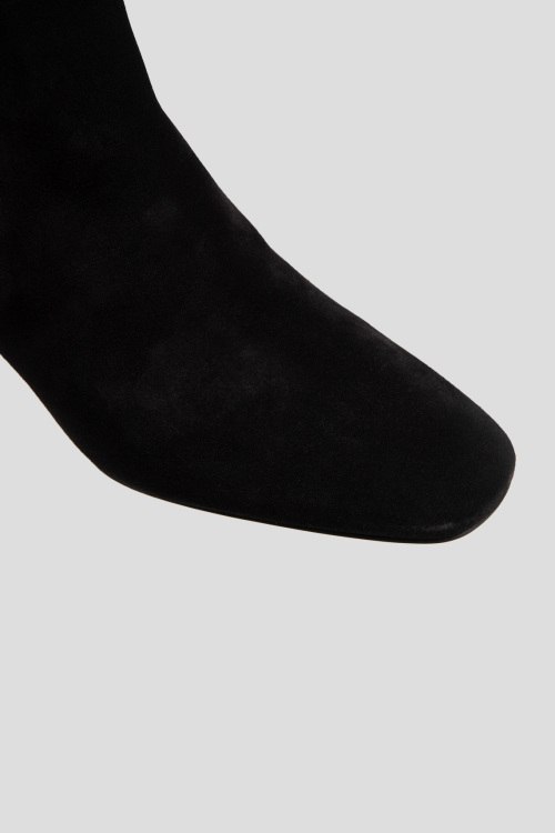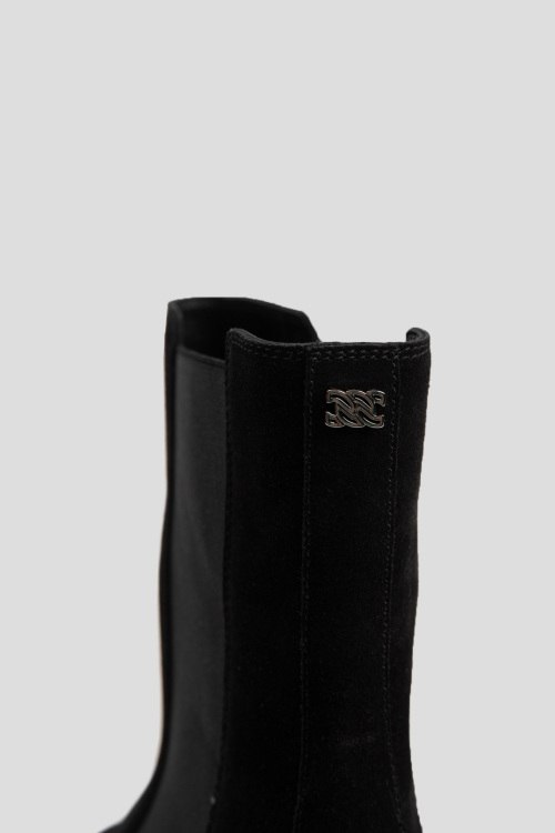 Детали: Женские черные замшевые ботильоны от Casadei (Касадей). Эластичные вставки по бокам, значок логотипа, закругленный носок, широкий каблук. Высота каблука: 5.5 см, высота голенища: 15 см