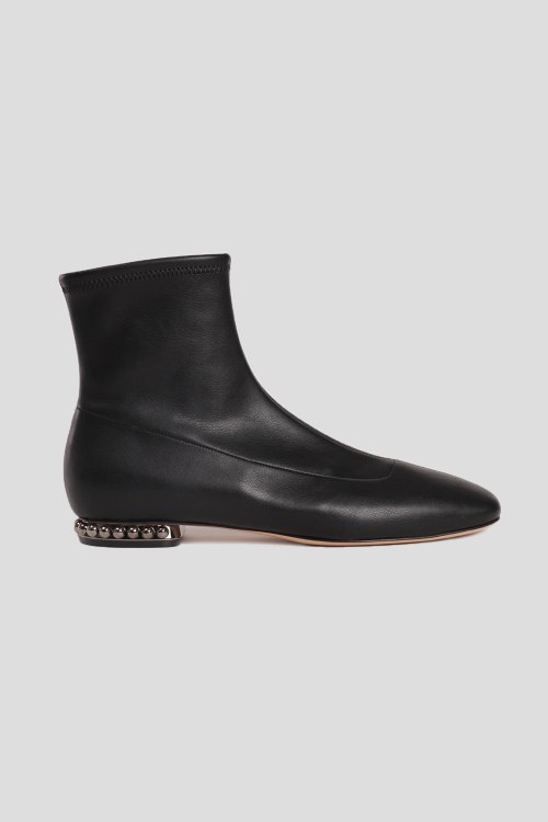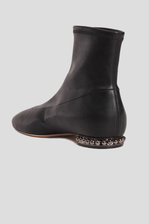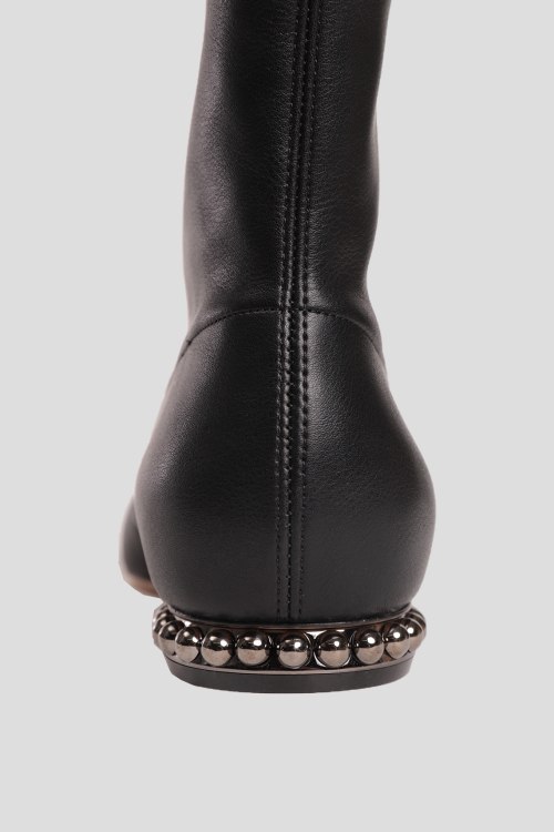 Детали: Женские черные ботильоны из экокожи от Casadei (Касадей). Модель из гладкой кожи, носочный дизайн, каблук с металлическим декором, закругленный носок