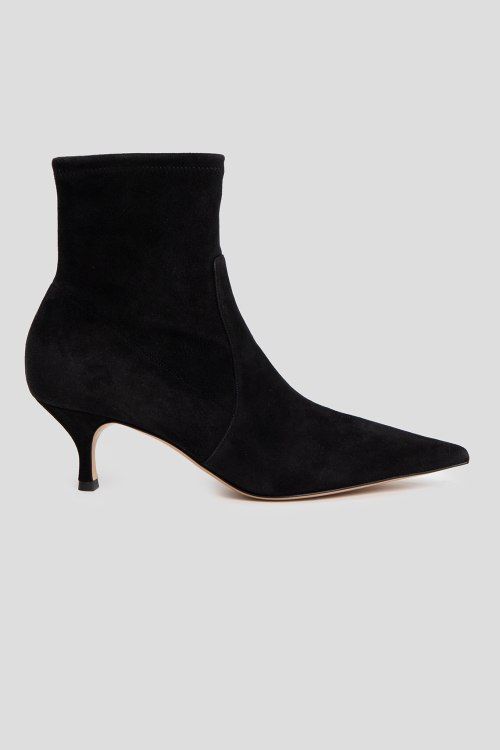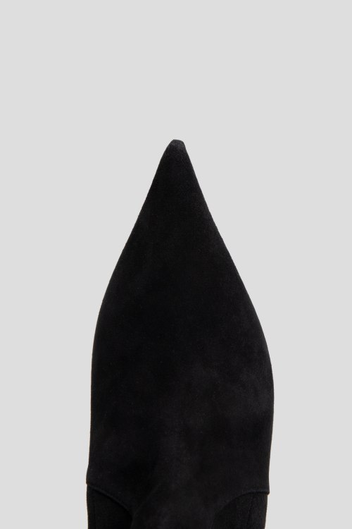 Детали: Женские черные замшевые ботильоны от Casadei (Касадей). Носочный дизайн, каблук-шпилька, узкий носок. Высота каблука: 6 см, высота голенища: 14 см