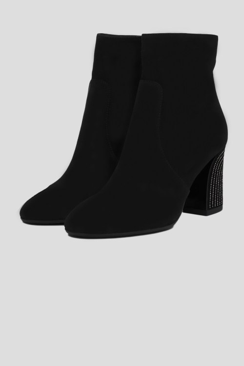 Детали: Женские черные замшевые ботильоны от Giovanni Fabiani (Джованни Фабиани). Закругленный носок, Сбоку застегиваются на застежку-молнию, высокий устойчивый каблук украшенный серебристыми кристаллами, плоская подошва. Высота каблука: 8,5 см (на размер 37)