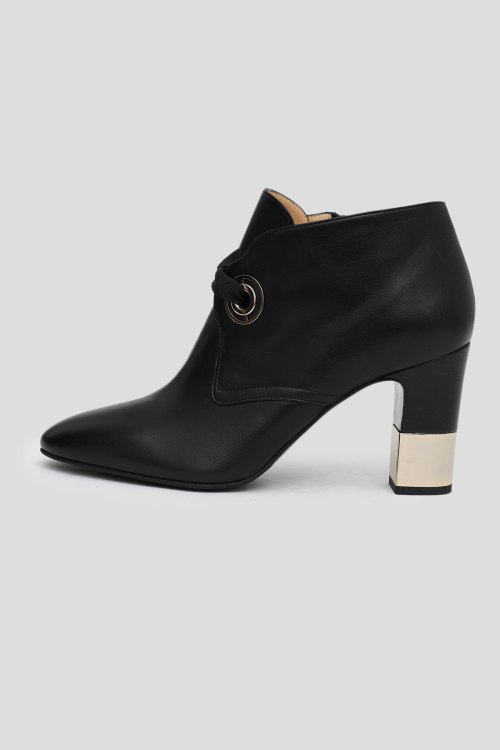 Детали: Женские черные ботильоны из натуральной кожи от Giovanni Fabiani (Джованни Фабиани). Миндалевидный носок. застегиваются сбоку на застежку-молнию, спереди декоративная шнуровка с металлической фурнитурой, высокий каблук с золотистой металлической вставкой высота каблука: 9 см (на размер 40)