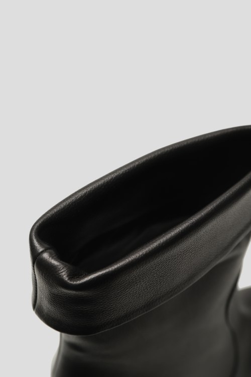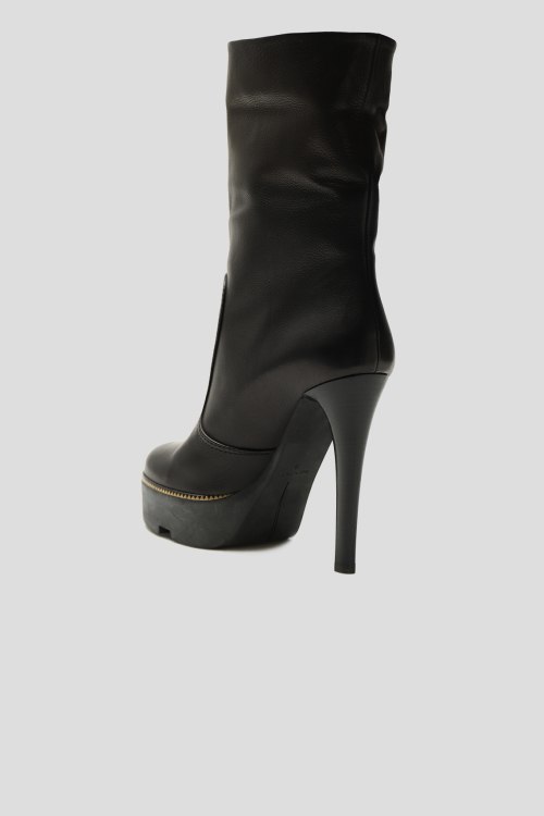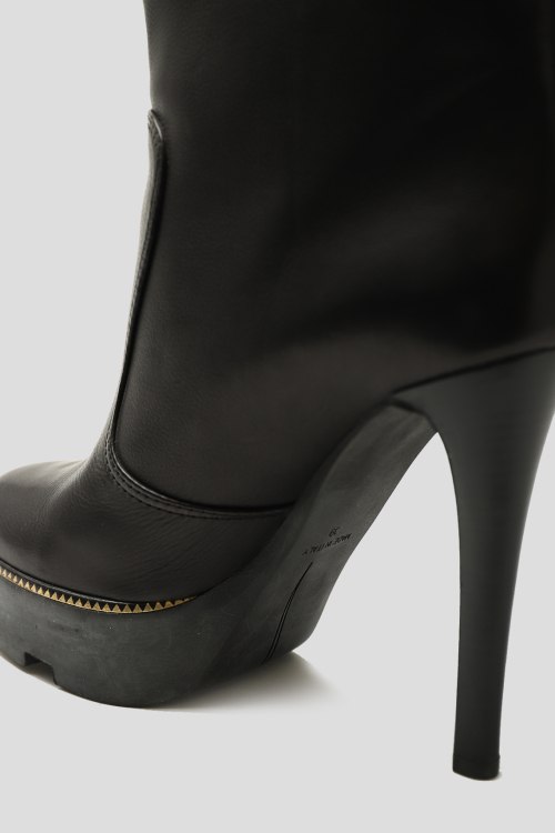 Детали: Женские черные ботильоны из натуральной кожи от Zanotti (Занотти). Закругленный носок, модель на танкетке, высокий каблук шпилька, дизайн без застежки. Измерения: высота каблука: 12,5 см, танкетка спереди: 3 см, высота голенища: 21 см