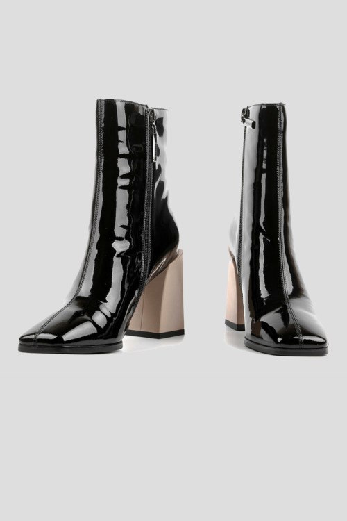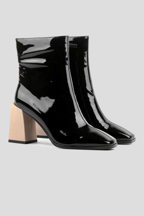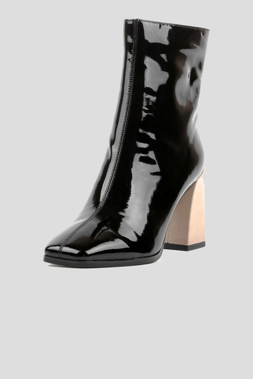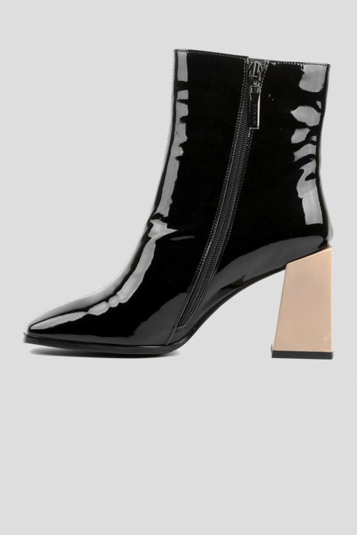 Детали: Женские черные ботильоны из лаковой кожи от Le Berdes (Ле Бердес). Квадратный носок, устойчивый каблук золотистого цвета, застежка-молния сбоку, утепленные байкой. Измерение: высота каблука: 8 см