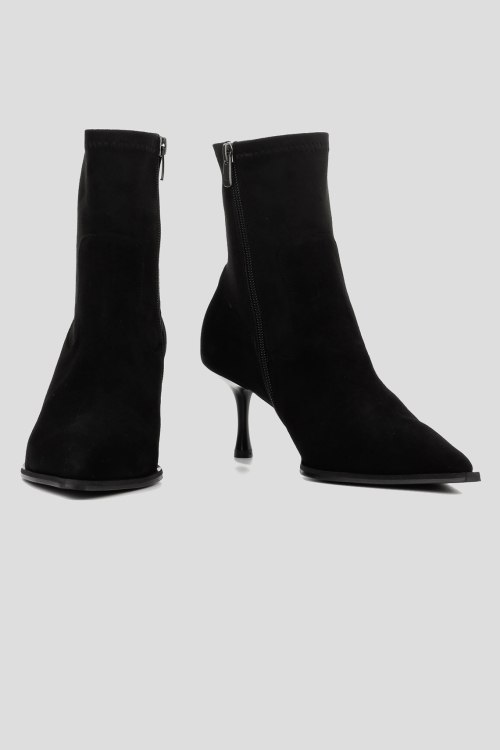Детали: Женские черные ботильоны из замши и стрейча от Le Berdes (Ле Бердес). Комбинация материалов, застежка-молния сбоку, узкий носок, каблук-шпилька, утепленная стелька. Высота каблука: 7 см. Замеры: длина стельки: размер 35 (23 см), 36 (23,5 см), 37 (24 см), 38 (24,5 см), 39 (25 см),40 (25,5)