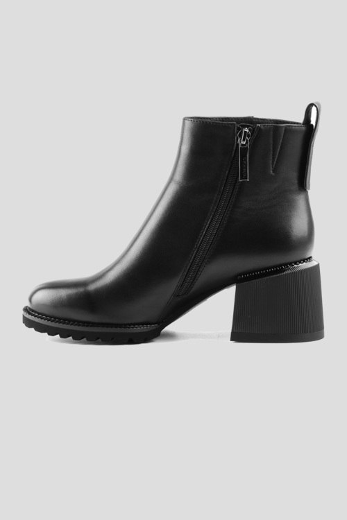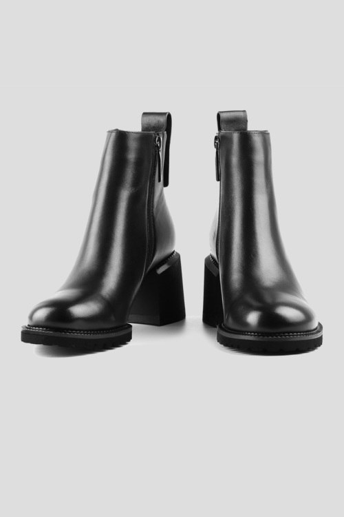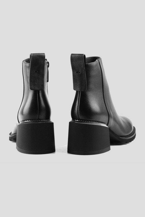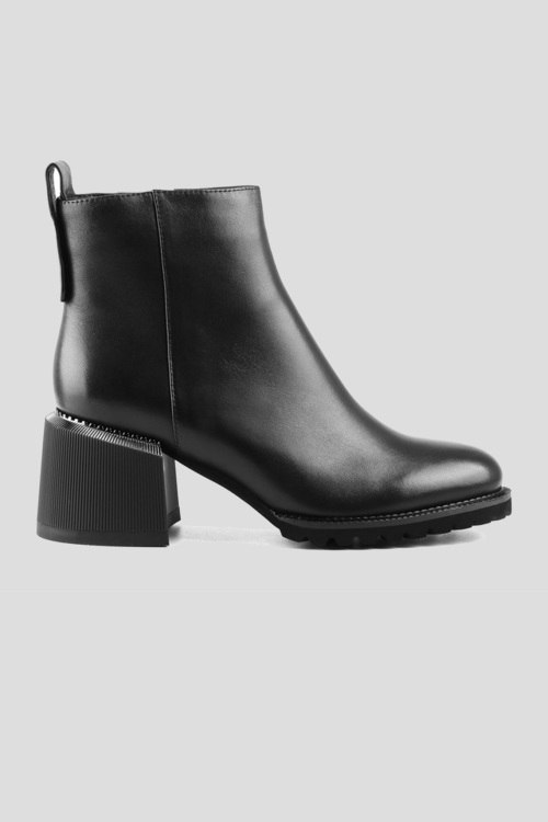 Женские черные ботильоны из натуральной кожи от Le Berdes (Ле Бердес). Застежка-молния сбоку, петля для подтягивания, закругленный носок, широкий каблук, внутри на байке. Высота каблука - 7 см