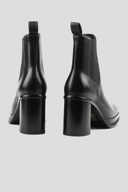 Женские черные ботинки-челси из натуральной кожи от Le Berdes (Ле Бердес). Квадратный носок, высокий каблук, эластичные вставки по бокам, петли для подтягивания. Высота каблука - 7 см
