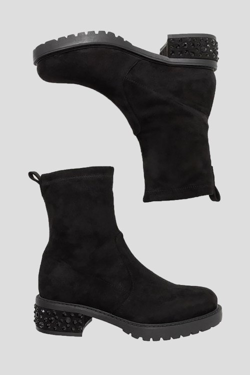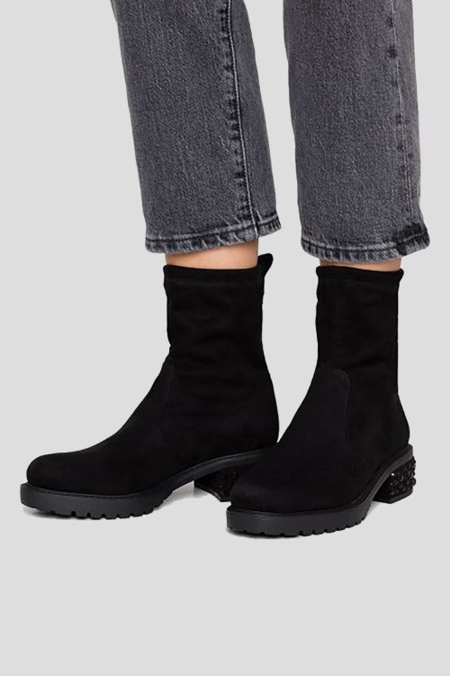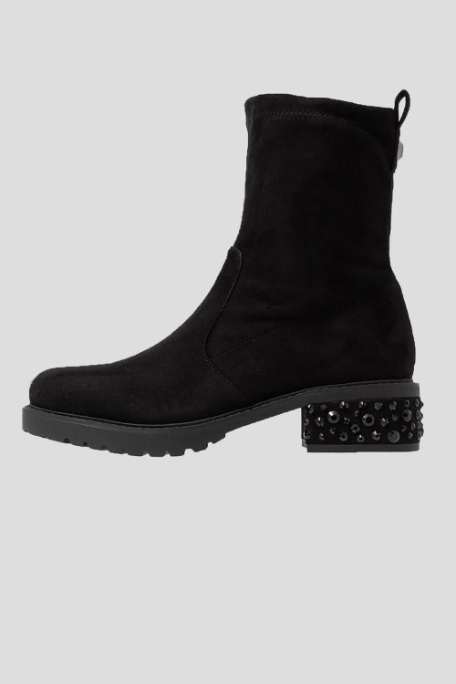 Детали: Женские черные стрейчевые ботильоны Nancy 2 от Liu Jo (Лиу Джо). Носочный дизайн, петля для подтягивания сзади, широкий каблук декорирован стразами, закругленный носок