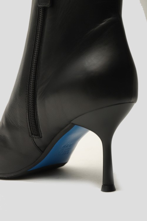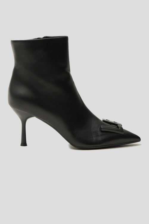 Детали: Женские черные ботильоны из натуральной кожи от Loriblu (Лориблу). Зауженный носок, каблук-шпилька, застежка-молния сбоку, спереди пряжка с логотипом бренда. Измерения: высота каблука: 8 см, высота голенища: 12,5 см