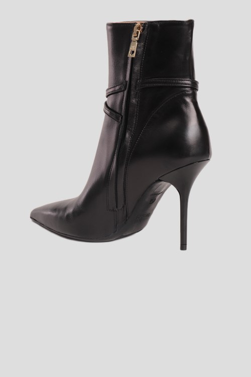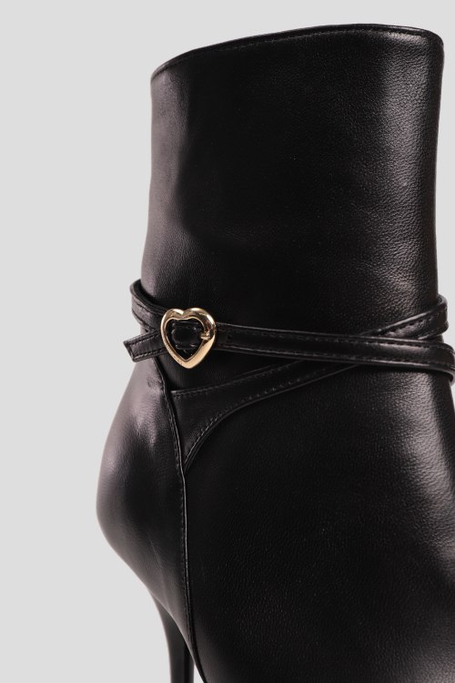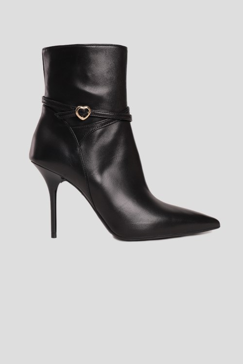 Детали: Женские черные кожаные ботильоны от Love Moschino (Лав Москино). Модель из гладкой кожи, пряжка с золотистым сердечком, застежка-молния сбоку, каблук-шпилька, узкий носок. Высота каблука: 10 см