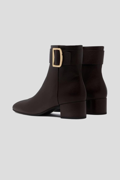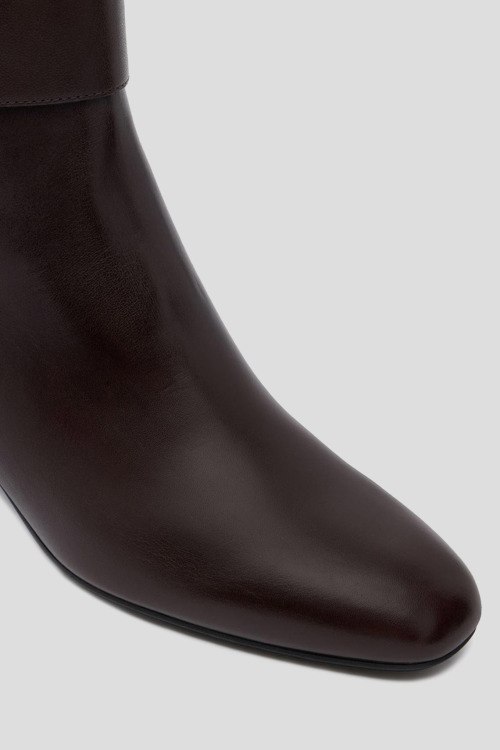 Детали: Женские темно-коричневые кожаные ботильоны Bemeri от Bally (Балли). Модель из гладкой кожи, золотистая пряжка, застежка-молния сбоку, миндалевидный носок, широкий каблук