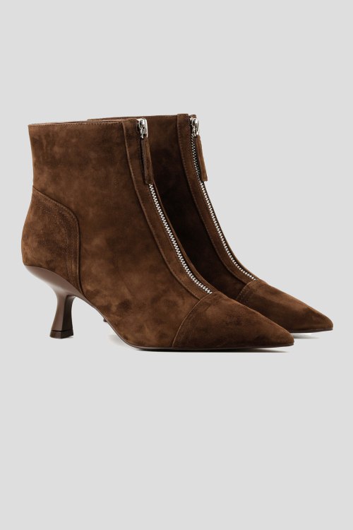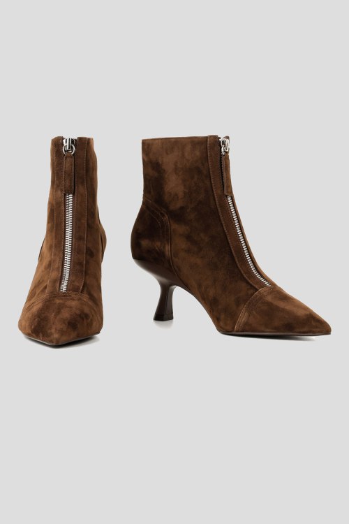 Детали: Женские коричневые ботильоны из натуральной замши от Le Berdes (Ле Бердес). Острый носок, спереди застежка на молнию, маленький каблук-шпилька, кожаная стелька. Замеры: длина стельки: размер 35 (22,5 см), 36 (23 см), 37 (23,5 см), 38 (24,5 см), 39 (25 см),40 (25,5)