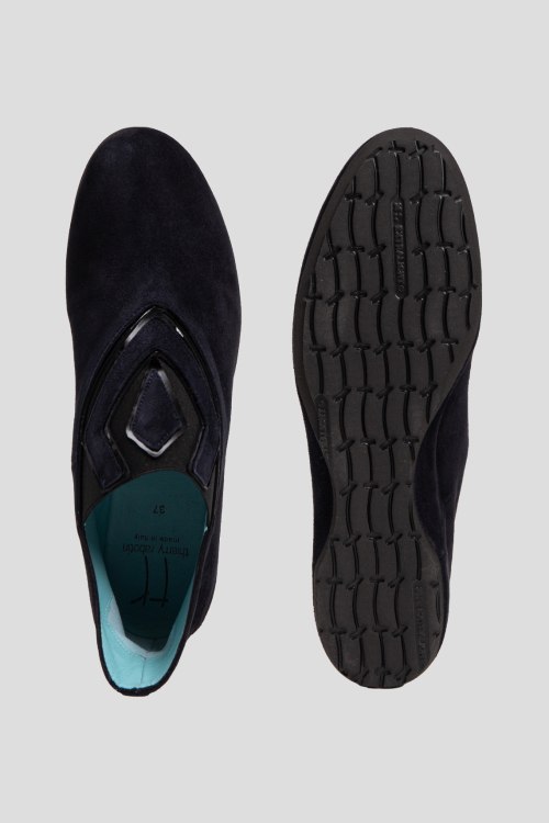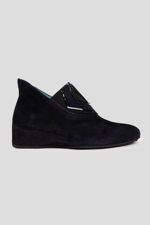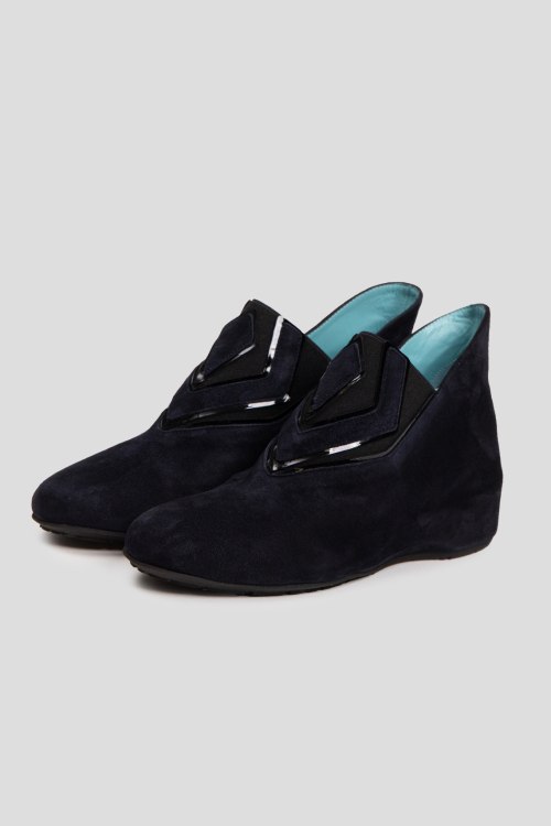 Детали: Женские темно-синие замшевые ботильоны от Thierry Rabotin (Тьерри Работин). Модель на скрытой танкетке, без застежки, закругленный носок, кожаная стелька. Высота танкетки: 9 см
