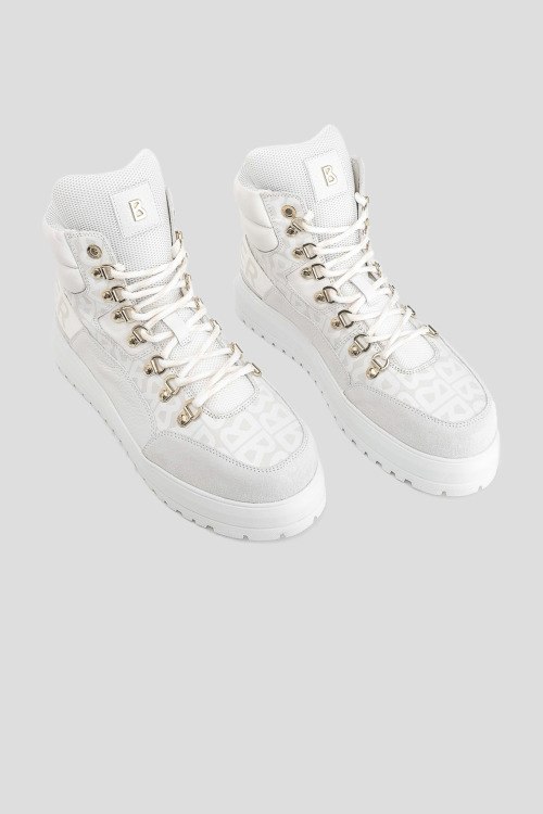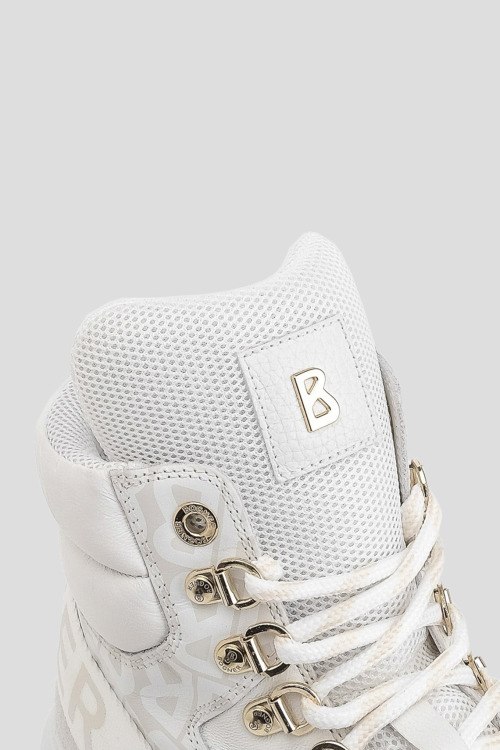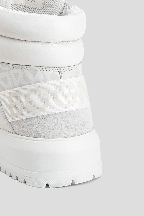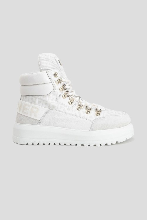 Детали: Женские белые кожаные ботинки Antwerp от Bogner (Богнер). Принт с монограммой, логотип на пятке и на язычке, классическая шнуровка, замшевые вставки, закругленный носок