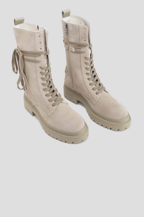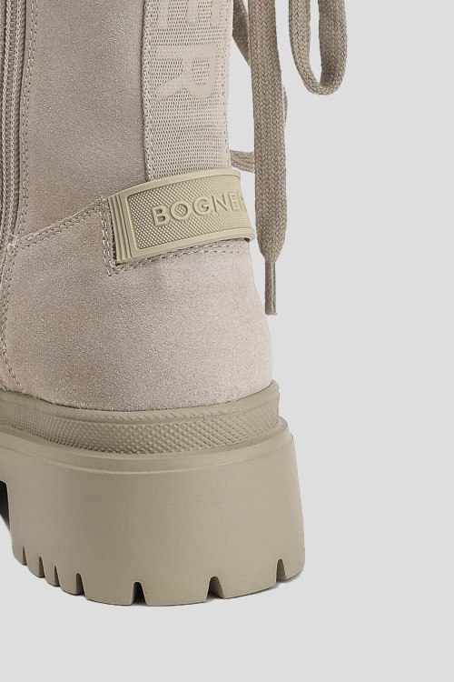 Детали: Женские бежевые замшевые ботинки Chesa Alpina от Bogner (Богнер). Классическая шнуровка, застежка-молния сбоку, петля для подтягивания сзади, логотип на пятке, закругленный носок, тракторная подошва