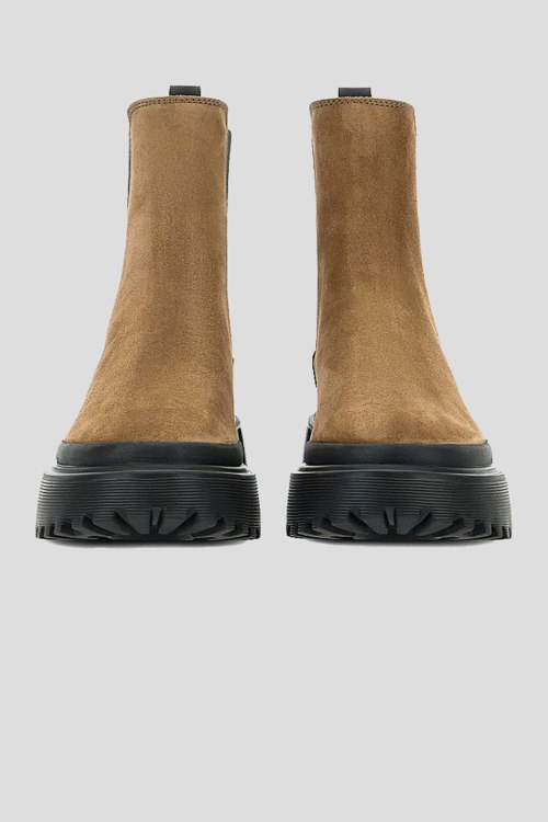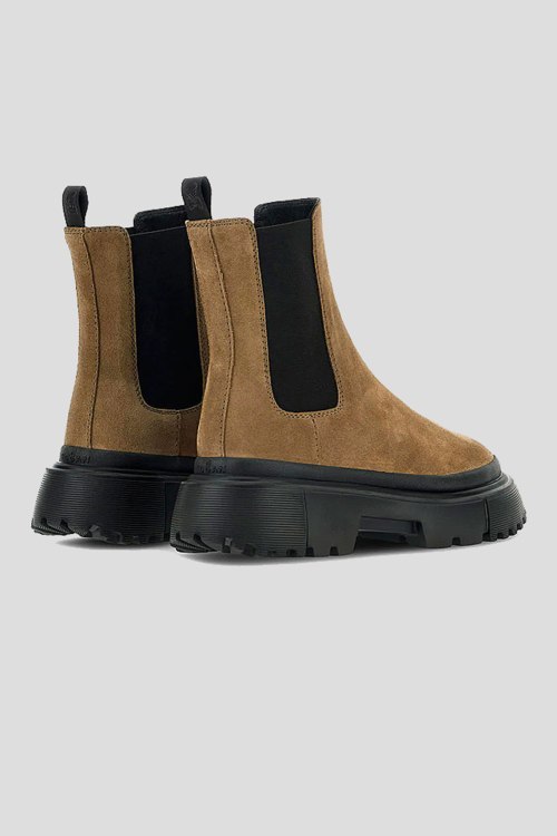 Детали: Женские бежевые замшевые челси от Hogan (Хоган). Эластичные резинки по бокам, петля для подтягивания сзади, закругленный носок, массивная подошва