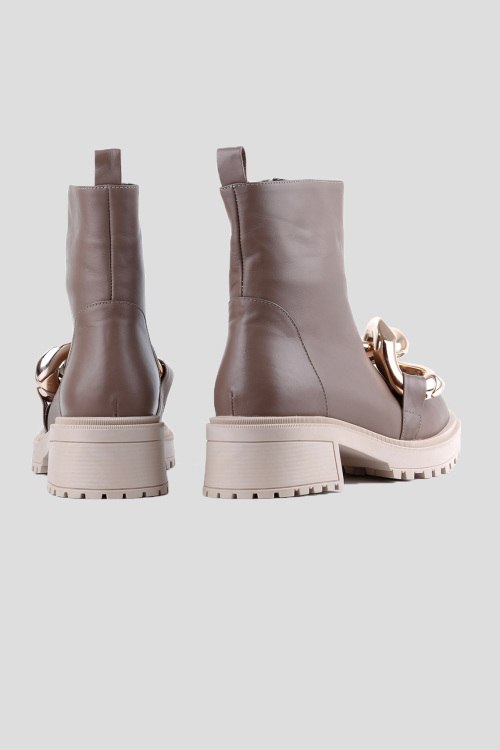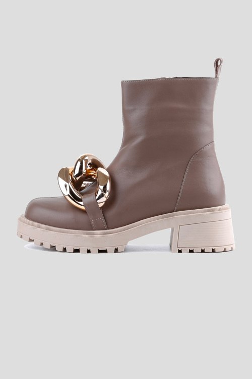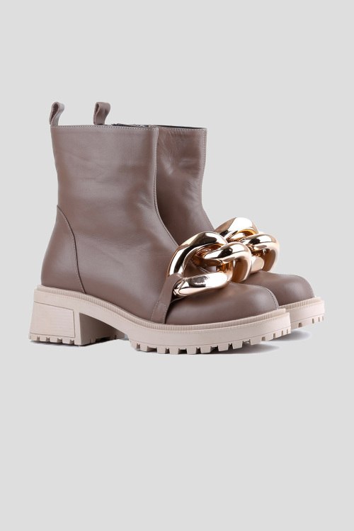 Детали: Женские темно-бежевые ботинки из натуральной кожи от Ilvi (Илви). Закругленный носок, сбоку застежка на молнию, тракторная подошва, петля для подтягивания, тракторная подошва, декорирована крупной металлической цепочкой золотистого цвета. Высота каблука: 6 см Замеры стельки: р.37 (24 см),р.38 (24,5 см),р.39 (25 см),р.40 (25,5 см),р.41 (26 см),р.42 (26,5 см)