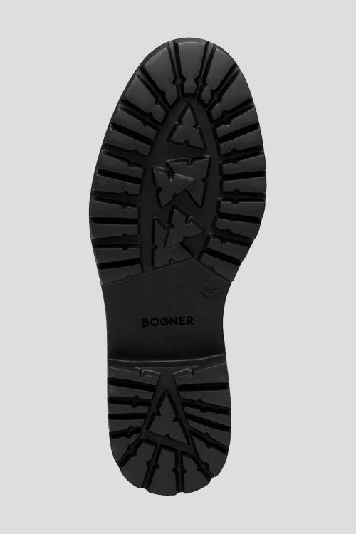 Детали: Женские черные кожаные ботинки Chesa Alpina от Bogner (Богнер). Модель из гладкой кожи, классическая шнуровка по всей длине, застежка-молния сбоку, петля для подтягивания сзади, закругленный носок, тракторная подошва