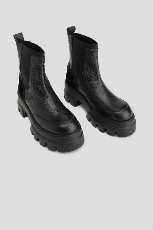 Детали: Женские черные ботинки-челси Sapporo из натуральной кожи от Bogner (Богнер). Закругленный носок, без застежки, по бокам эластичная вставка, тракторная подошва