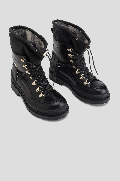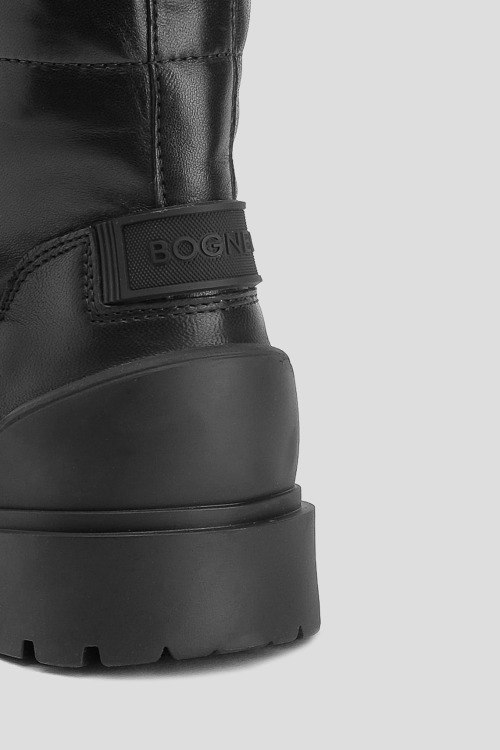 Детали: Женские черные ботинки из кожи и текстиля St.Moritz от Bogner (Богнер). Модель из гладкой кожи, текстильный верх на затяжке, классическая шнуровка, петля для подтягивания сзади, логотип сбоку, закругленный носок