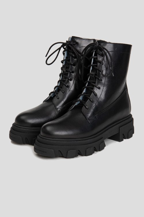 Детали: Женские черные ботинки из натуральной кожи от Chiara Ferragni (Кьяра Ферраньи). Шнуровка по всей длине, застежка-молния сбоку, закругленный носок, рельефная подошва. Высота подошвы: 4 см