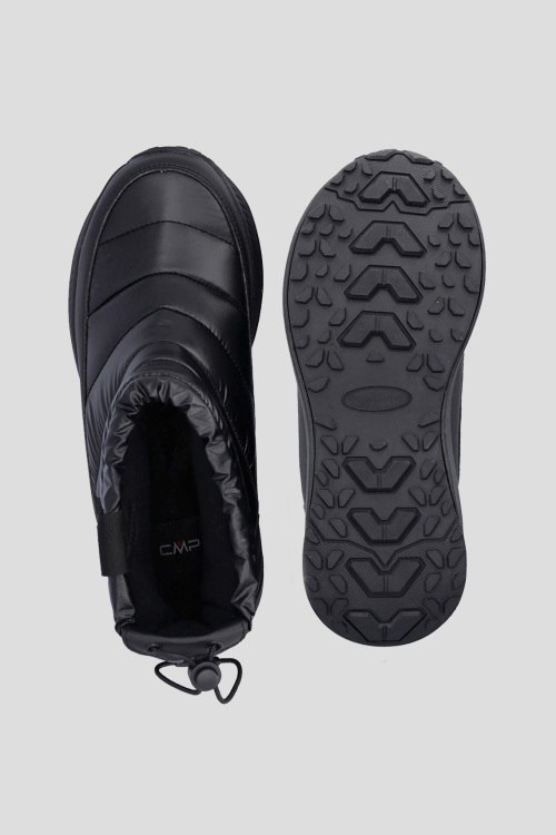Детали: Женские черные дутые ботинки Zoy Wmn Snow Boots Wp от CMP (СМП). Стеганый дизайн, без застежки, водонепроницаемая модель, по верху изделия утяжка, текстильная подкладка, резиновая рельефная подошва, логотип бренда, мембрана ClimaProtect