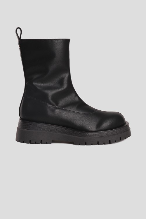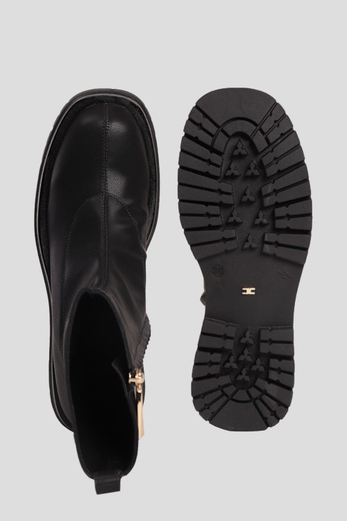 Детали: Женские черные ботинки из натуральной кожи от Elisabetta Franchi (Елизабетта Франчи). Закругленный носок, сбоку застежка на молнию, петля для подтягивания, патч-лого, тракторная подошва