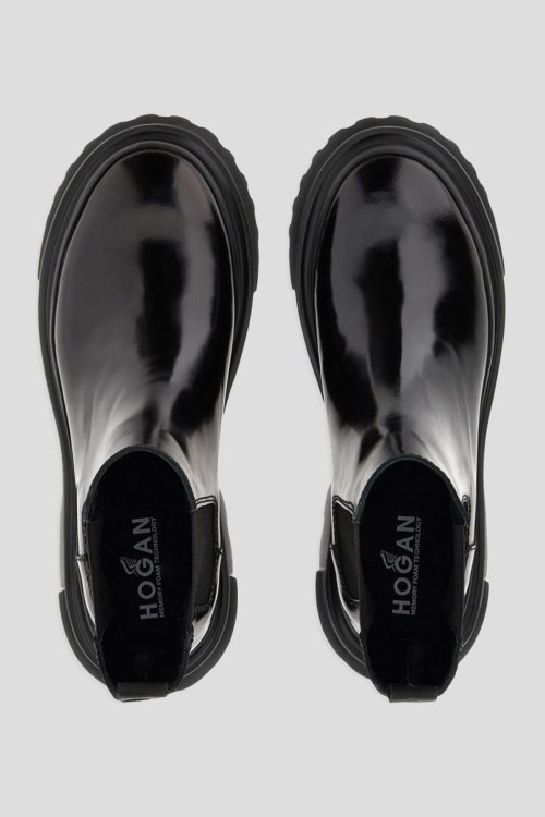 Детали: Женские черные кожаные челси от Hogan (Хоган). Модель из гладкой кожи, эластичные резинки по бокам, петля для подтягивания сзади, закругленный носок, массивная подошва