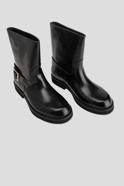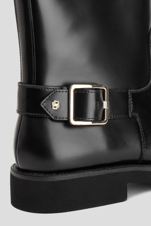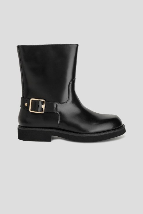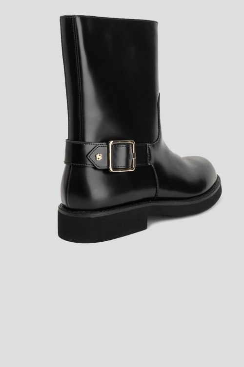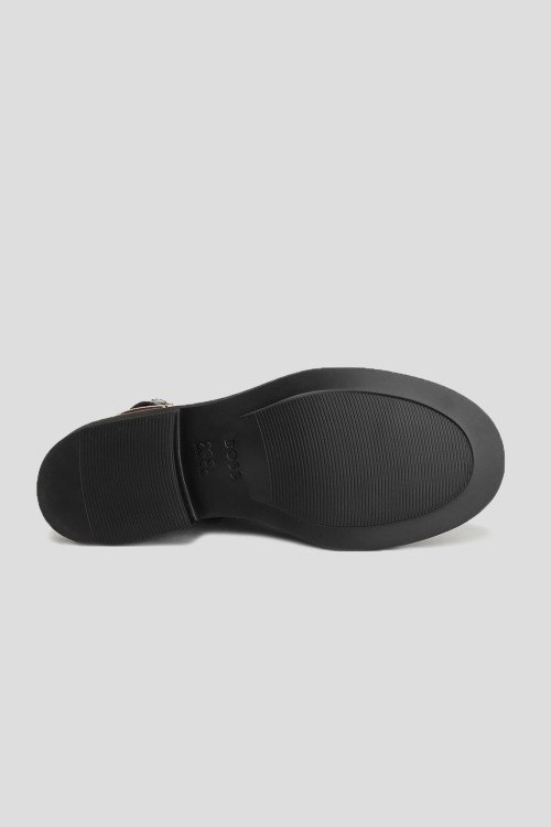 Детали: Женские черные кожаные ботинки Eleri от Hugo Boss (Хуго Босс). Модель из гладкой кожи, без застежки, ремешок с пряжкой, закругленный носок