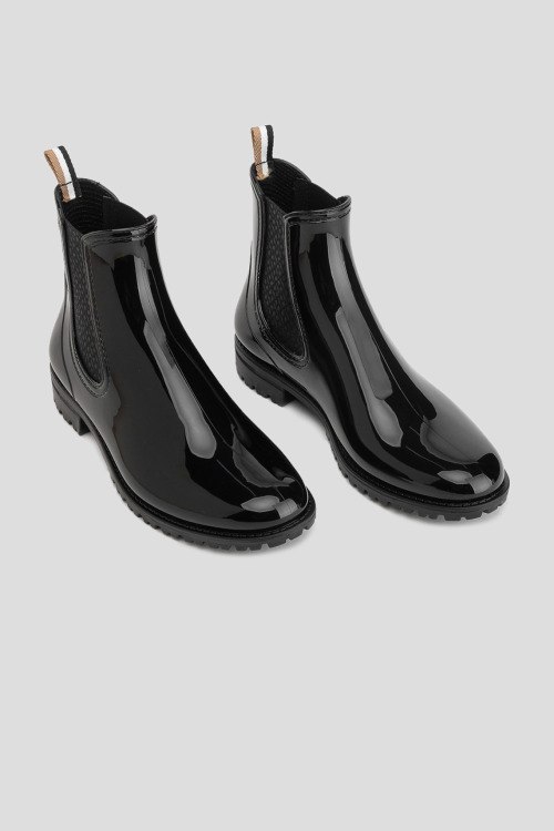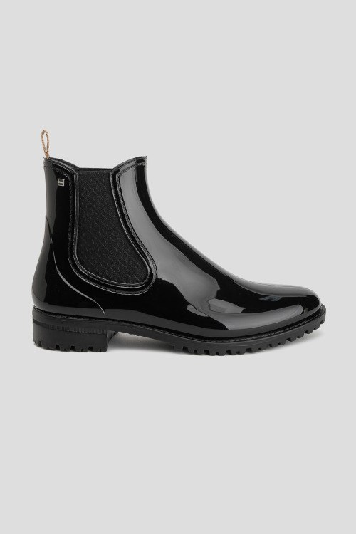Детали: Женские черные ботинки Martha из резины от Hugo Boss (Хуго Босс). Закругленный носок, эластичные вставки по бокам, без застежки, петля для подтягивания, рельефная подошва
