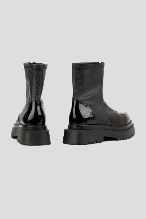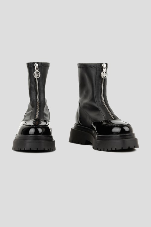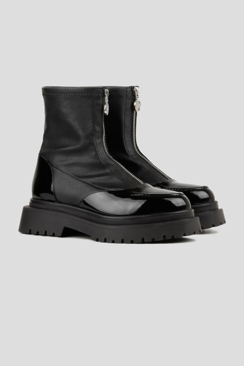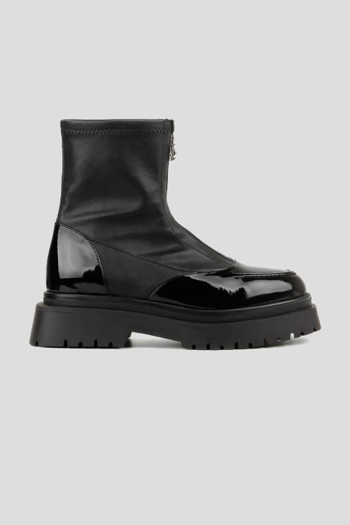 Детали: Женские черные ботинки из лаковой кожи и стрейча от Ilvi (Илви). Закругленный носок, спереди застежка на молнию, комбинация материалов, тракторная подошва, модель утепленная байкой. Замеры: р. 35 (23 см), р. 36 (23,5 см), р. 37 (24 см), р. 38 (24,5 см), р. 39 (25 см), р. 40 (25,5 см), р. 41 (26 см)