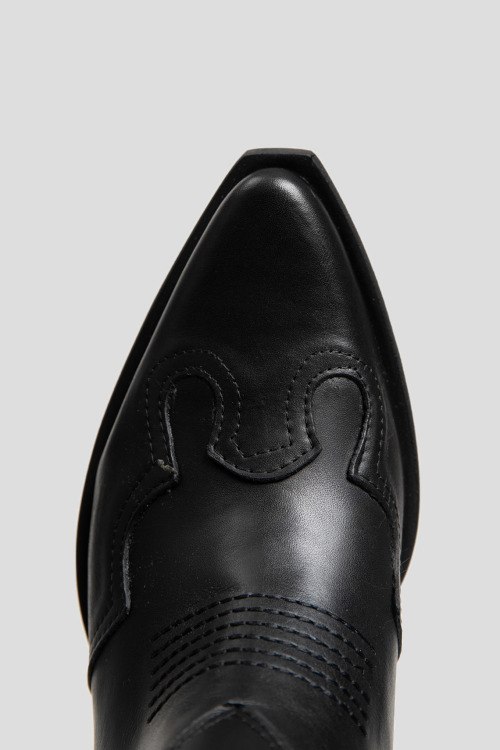 Детали: Женские черные казаки из натуральной кожи от L'Estrosa (Лестроса). Заостренный носок, сбоку застежка на молнию, широкий каблук, кожаная стелька. Измерения: каблук 5,5 см