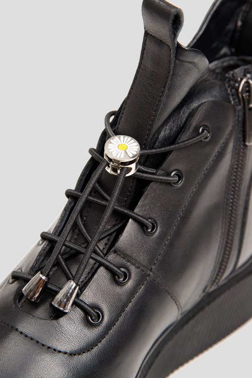 Детали: Женские черные ботинки из натуральной кожи от Lab Milano (Лаб Милано). Закругленный носок, спереди эластичная шнуровка, сбоку застежка на молнию, высокая подошва, петля для подтягивания, логотип бренда. Измерения: подошва - 4,5 см