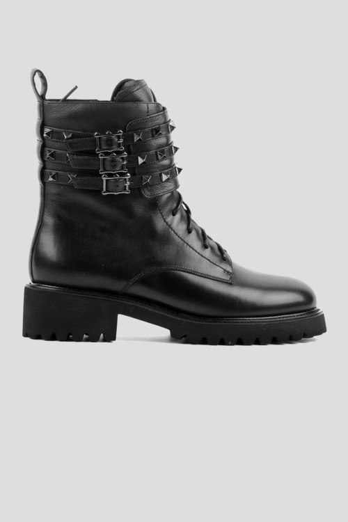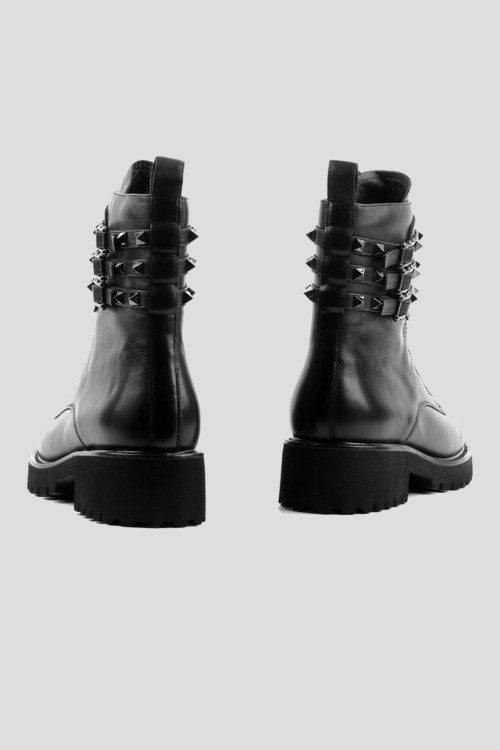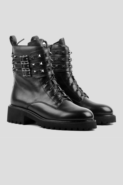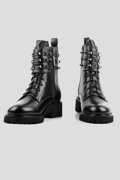 Детали: Женские черные ботинки из натуральной кожи от Le Berdes (Ле Бердес). Миндалевидный носок, рельефная подошва, широкий низкий каблук, спереди классическая шнуровка, сбоку застежка-молния, петли для подтягивания, декорированы серебристыми заклепками, утепленные байкой