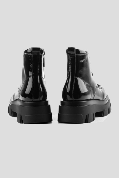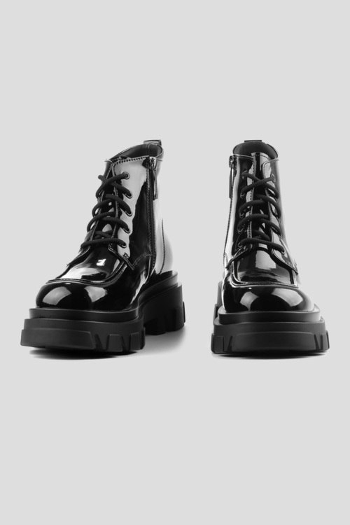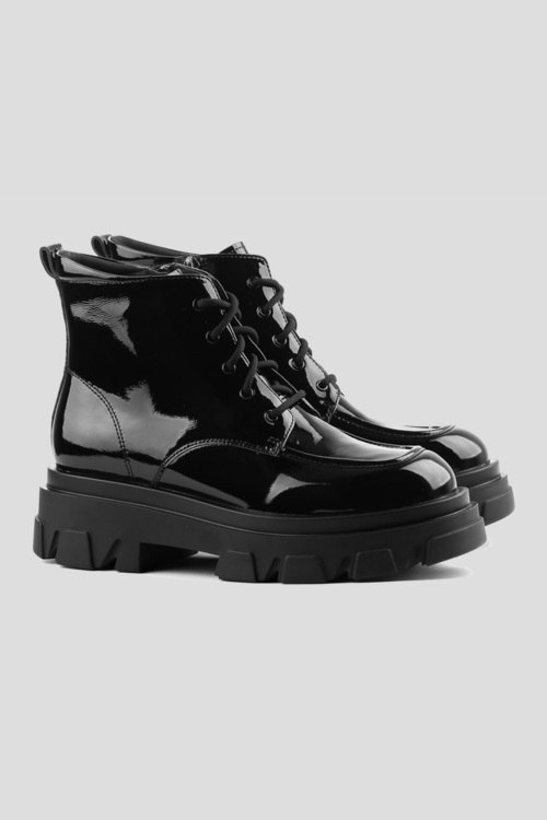 Детали: Женские черные ботинки из натуральной лакированной кожи от Le Berdes (Ле Бердес). Классическая шнуровка, застежка-молния сбоку, закругленный носок. Измерения: высота каблука - 5 см