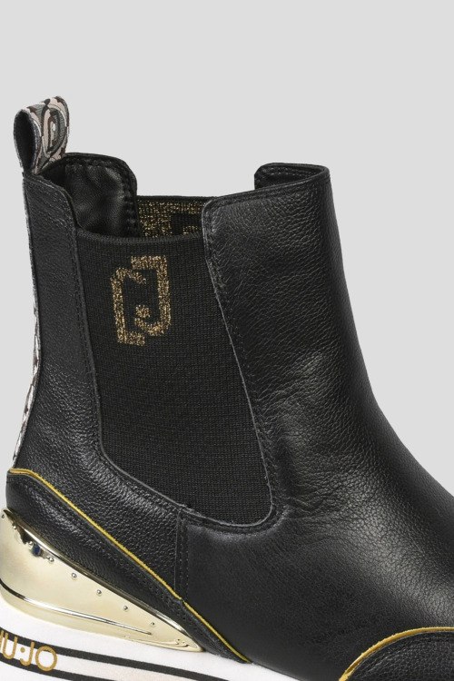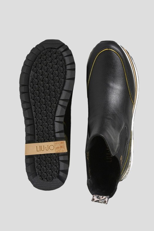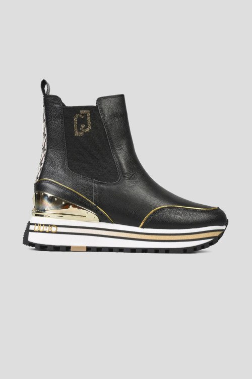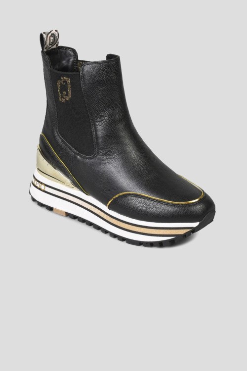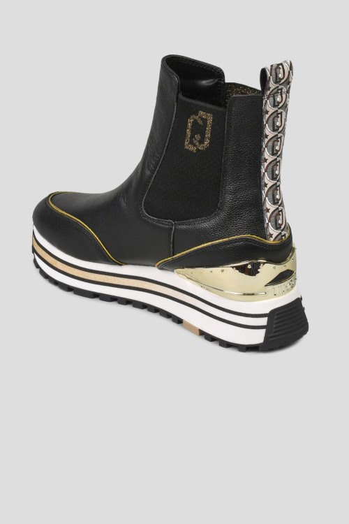 Детали: Женские черные ботинки-челси из натуральной кожи и экокожи от Liu Jo (Лиу Джо). Закругленный носок, эластичные вставки по бокам, петля дял подтягивания, толстая подошва, текстильная стелька. Платформа: 4 см, Высота голенища: 17 см