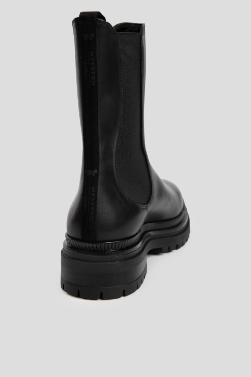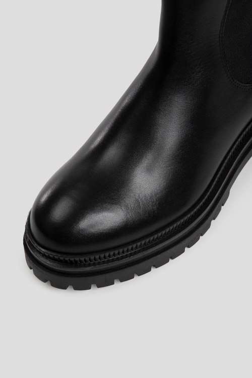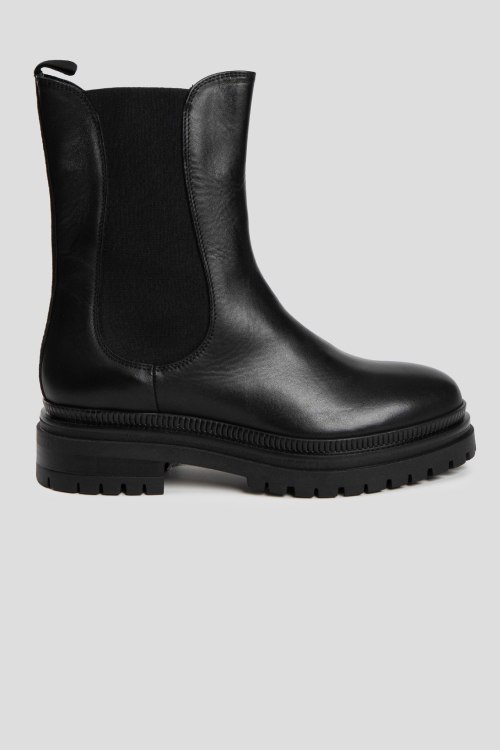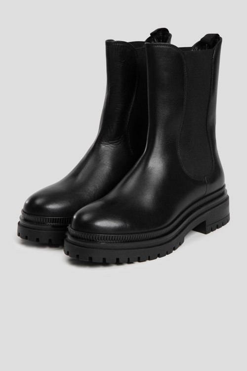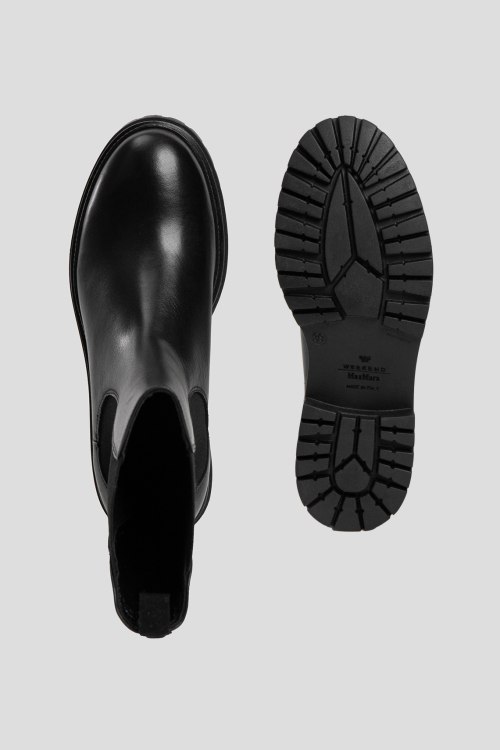 Детали: Женские черные ботинки-челси из натуральной кожи от Max Mara Weekend (Макс Мара Викенд). Закругленный носок, без застежки, по бокам эластичная резинка, тракторная подошва, петля для подтягивания