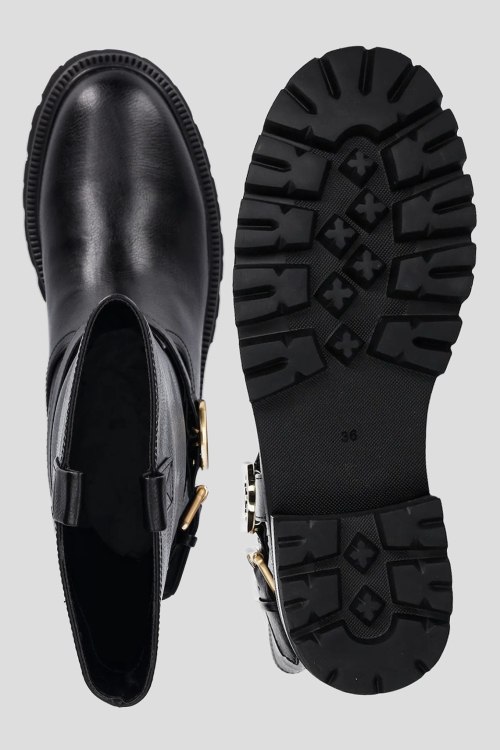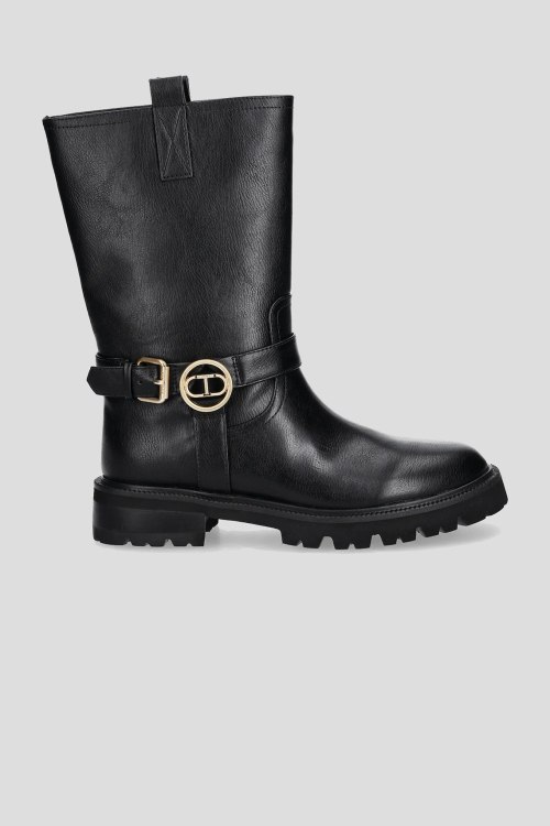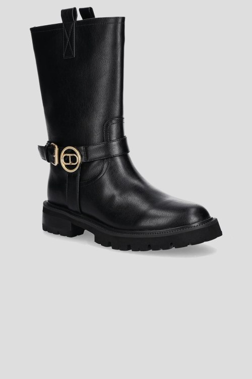 Детали: Женские черные ботинки из экокожи от TWINSET (Твинсет).Модель из зернистой кожи, без застежки, значок логотипа, две петли для подтягивания, закругленный носок, тракторная подошва