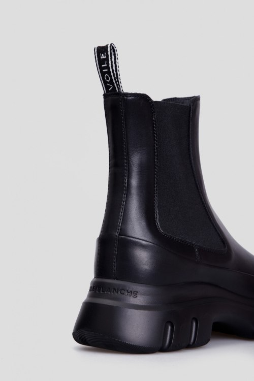 Детали: Женские черные кожаные челси от Voile Blanche (Вуаль Бланш). Модель из гладкой кожи, эластичные резинки по бокам, петля для подтягивания сзади, закругленный носок, кожаная стелька. Высота подошвы: 4,5 см
