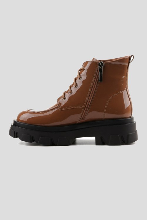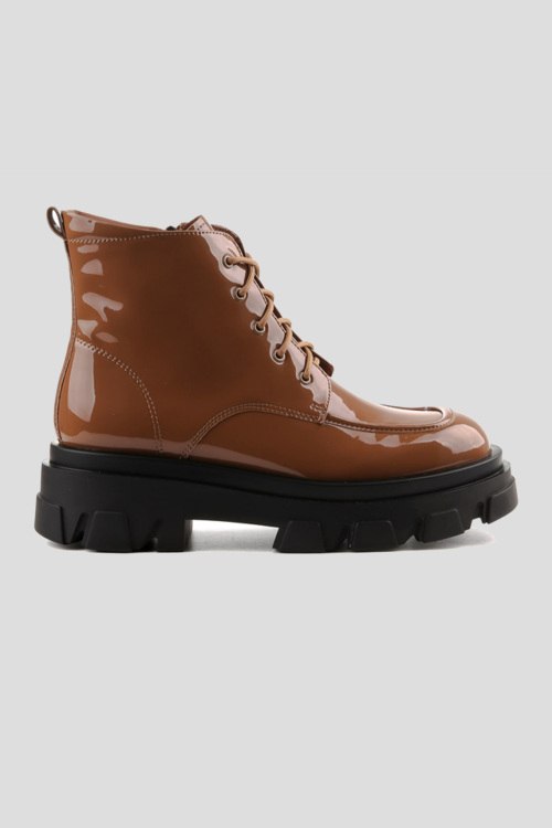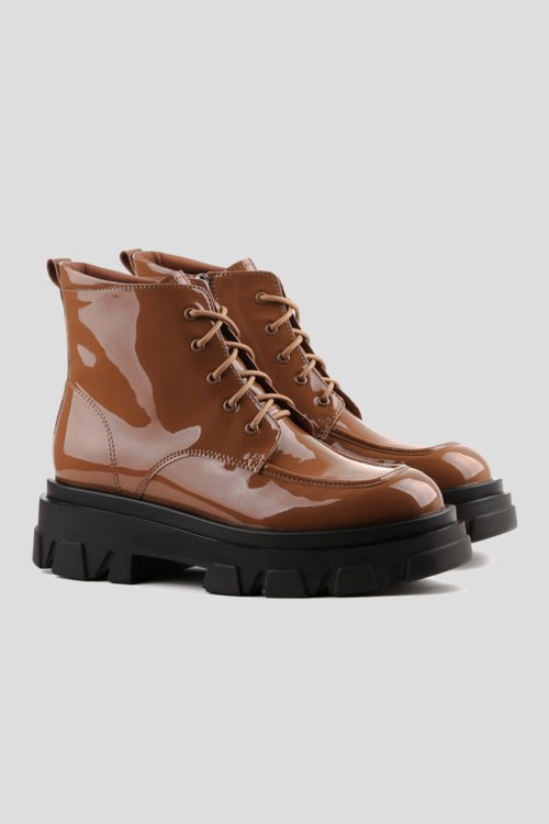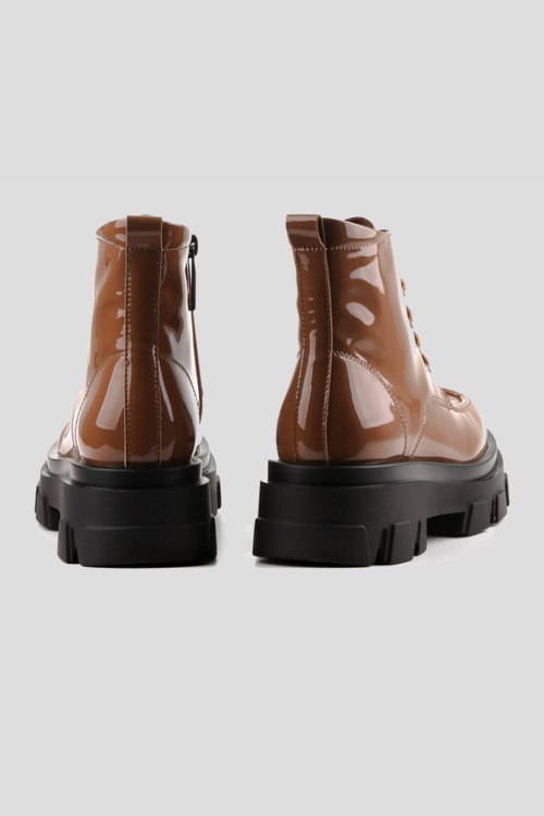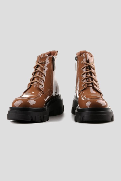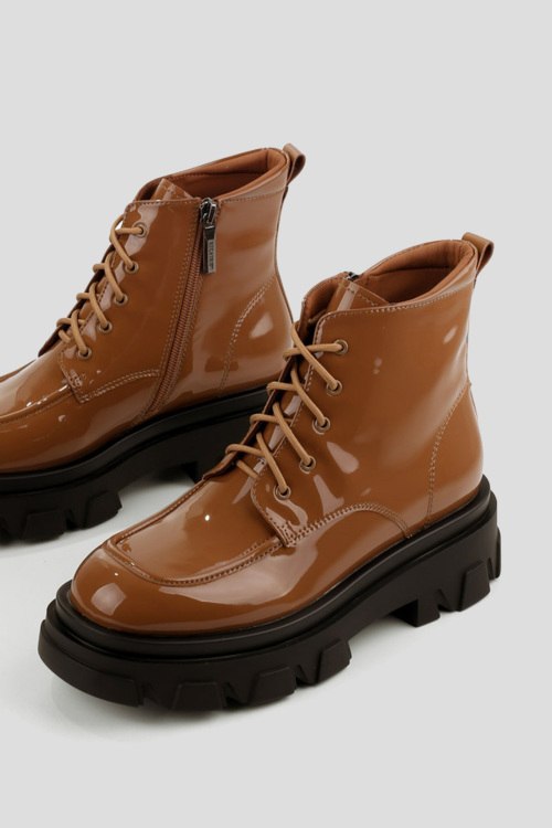 Детали: Женские коричневые ботинки из натуральной лакированной кожи от Le Berdes (Ле Бердес). Классическая шнуровка, застежка-молния сбоку, закругленный носок. Измерения: высота каблука - 5 см