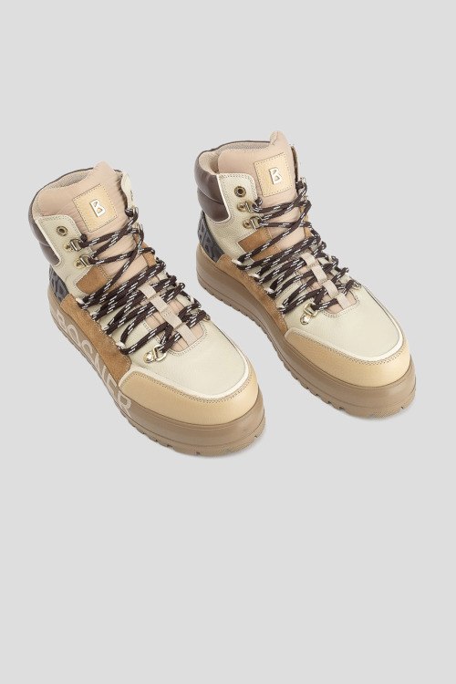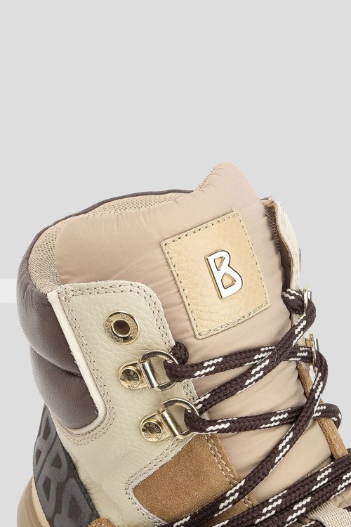 Детали: Женские кремовые кожаные ботинки Antwerp от Bogner (Богнер). Замшевые вставки, логотип на пятке и на язычке, классическая шнуровка, закругленный носок, брендированная подошва