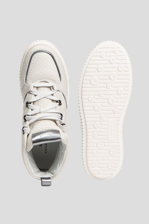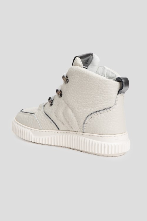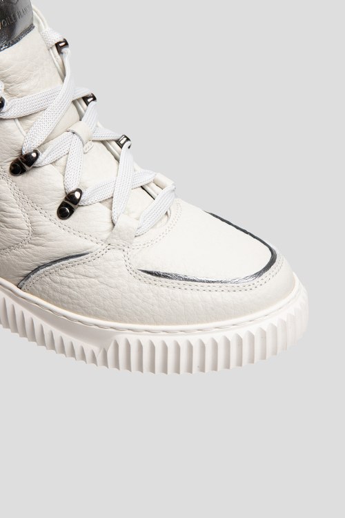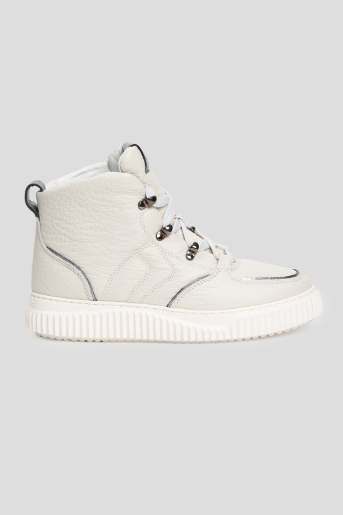 Детали: Женские кожаные ботинки молочного оттенка от Voile Blanche (Вуаль Бланш). Модель из зернистой кожи, логотип на язычке, классическая шнуровка, петля для подтягивания сзади, закругленный носок. Подошва: 3.5 см, высота голенища: 8.5 см