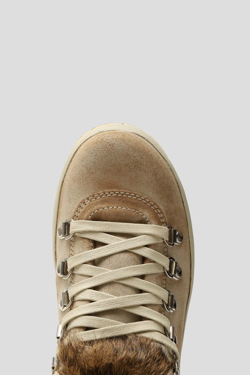 Детали: Женские бежевые ботинки на меху из натуральной кожи от Bogner (Богнер). Закругленный носок, спереди на шнуровке, декорированы меховой опушкой по верху изделия, внутри на меху, рельефная подошва