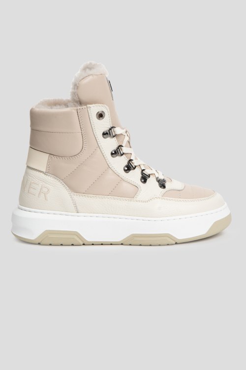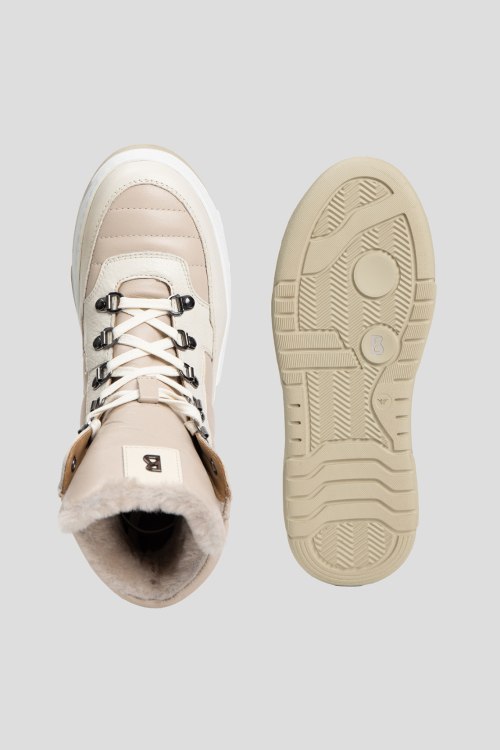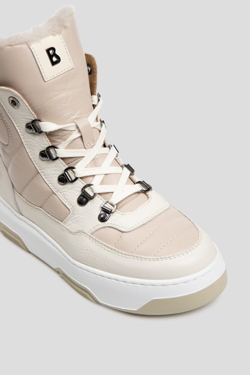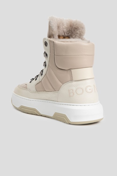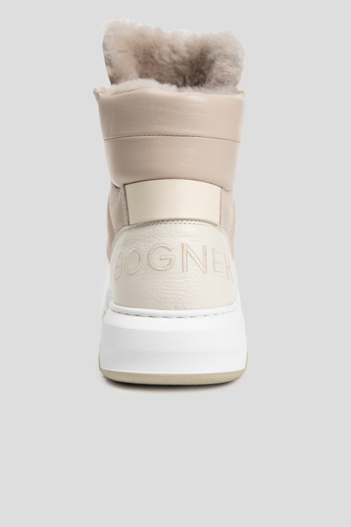 Детали: Женские бежевые кожаные ботинки на меху от Bogner (Богнер). Модель из гладкой и зернистой кожи, логотип на язычке, классическая шнуровка, закругленный носок, внутри на меху