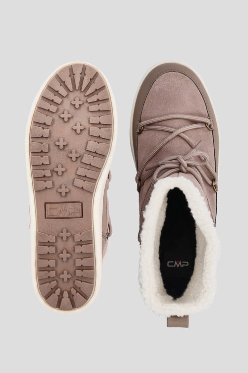 Детали: Женские бежевые ботинки Kayla Wmn Snow Boots Wp из натуральной кожи и замши от CMP (СМП). Закругленный носок, комбинация материалов, спереди шнуровка с металлическими петлями, утепленные мехом, тиснение с логотипом бренда, высокая подошва из резины