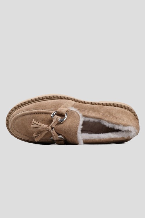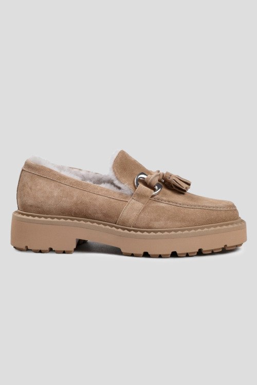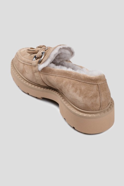Детали: Женские бежевые замшевые лоферы на меху от Kennel & Schmenger (Кеннел энд Шменгер). Металлическая фурнитура, декор кисточками, закругленный носок, внутри на меху. Высота каблука: 4 см, платформа: 2.5 см