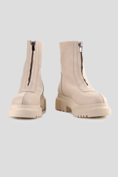 Детали: Женские бежевые ботинки из натуральной кожи от Le Berdes (Ле Бердес). Миндалевидный носок, спереди застежка-молния, модель утепленная мехом, массивная подошва. Измерения: высота каблука: 5 см, высота платформы: 3 см
